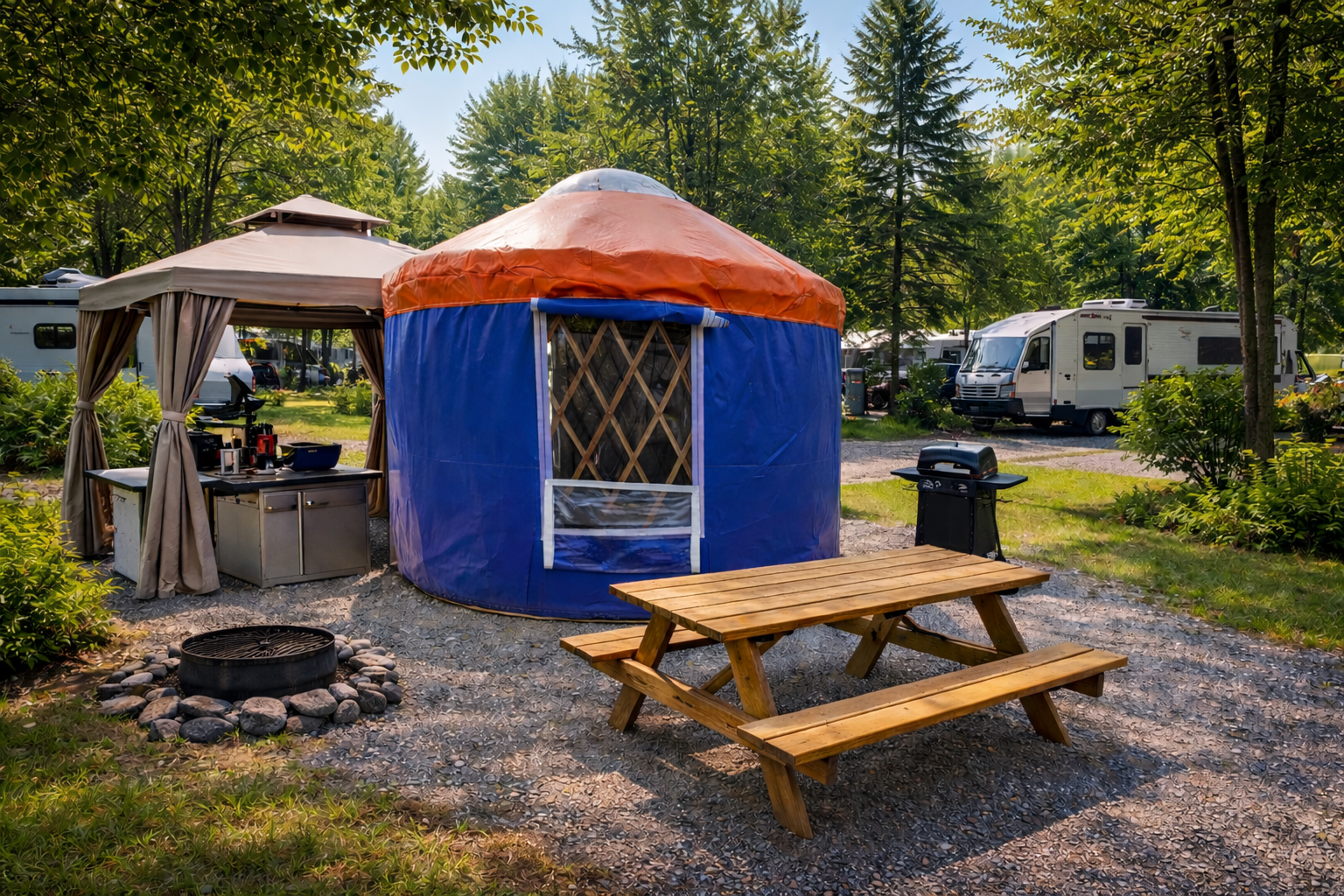 Nos prêts-à-camper au Camping de l’Estrie offrent une expérience idéale pour les familles, les couples et les amateurs de plein air qui souhaitent profiter de la nature sans les contraintes du camping traditionnel.